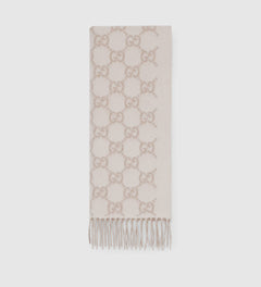 .Bonnet et Écharpe en jacquard de cachemire GG blanc cassé et beige