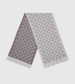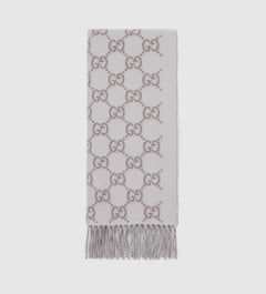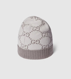 .Bonnet et Écharpe en jacquard de cachemire GG ivoire et gris clair